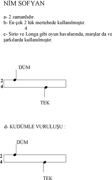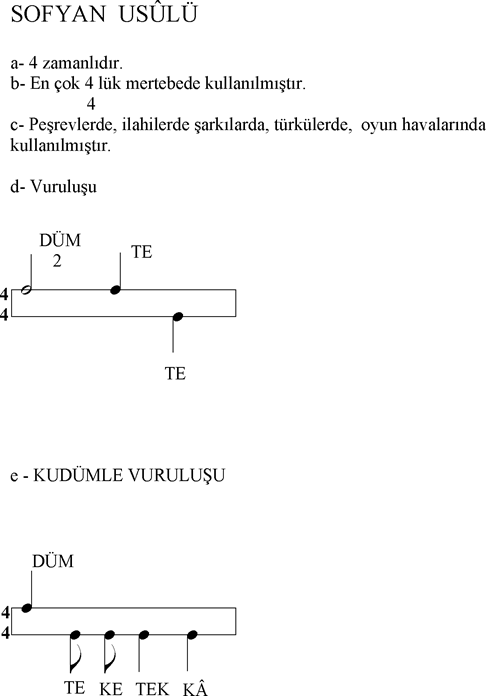 4/4 lük Sofyan Usûlünde dört tane ayrı dörtlük vurulmaz baştaki iki birim birleştirilmiş şekilde sonra gelen her birim ayrı ayrı vurulur.