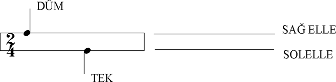 Düm: Kuvvetli zaman demektir. Sağ elle sağ diz üzerine vurularak ifade edilir.