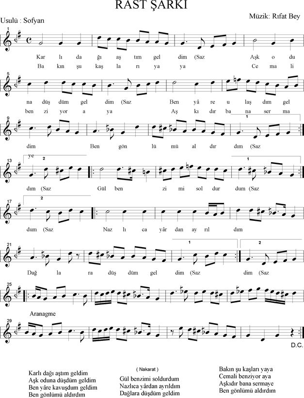 | Aksak Semai (10/8) Havada Bulut Yok Fincanın Etrafı Kimseye Etmem Şikâyet Iğdır Al Alma | *Düüm Te Ka Düüm Teek Tek *Düm Te Ke Tek Ka Te Ke Düme Düm Teek Tek *Düm Te Ke Tek Ka Te Ke Düme Düm Tek Te Ke Te Ke |
