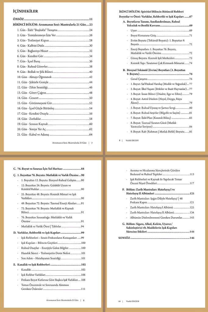 Ardından gelen başlıklar, “Işık Rehberleri, Işık Kapıları, Ruhsal Onaylar, Hazırlık Süreci” ışıkla temasın nasıl bir derinlik, nasıl bir sorumluluk ve nasıl bir teslimiyet gerektirdiğini anlatır.